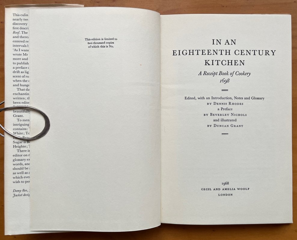 In an Eighteenth Century Kitchen: A Receipt Book of Cookery 1698 With a Preface by Beverley Nichols and Illustrated by Duncan Grant