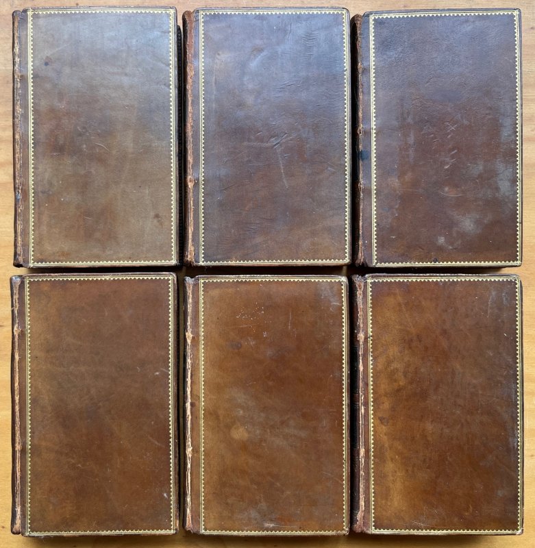 No Edition stated. 6 Volumes, complete. Pocket-size 8vo. (approx. 12.3 x 7.6cm) hardbacks in full tan calf with 2 black title and volume number labels, decorative gilt to spines and decorative gilt borders to boards. All edges speckled red. Each volume with an engraved frontispiece, tissue-guarded, and an engraved vignette to title page. Ink gift inscription, dated 1860, to ffep of Volume I. Occasional light foxing. Small closed tear to edge of one tissue guard and crease to another. Gilt to spines rather dulled but labels still legible. Slight rubbing to spine edges. A VERY GOOD, HANDSOME SET.