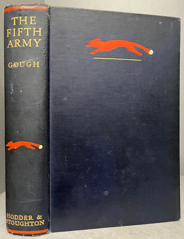 FIRST EDITION 8vo. black cloth hardback with gilt titles to spine and red fox to spine and upper board. 355pp., Indexed, with portrait frontispiece and 20 foldout maps. With loose Order of Service (8pp. stapled) for Gough's memorial at Westminster Abbey, 1963, with associated newspaper clipping pasted to rear cover (lower edge creased). Another newspaper clipping about Gen. Sir Ivor Maxse, quoting passages from The Fifth Army, pasted to ffep. Some light foxing and handling marks, occasionally heavy. Some light soiling marks and edgewear to covers. A Good+ Copy.