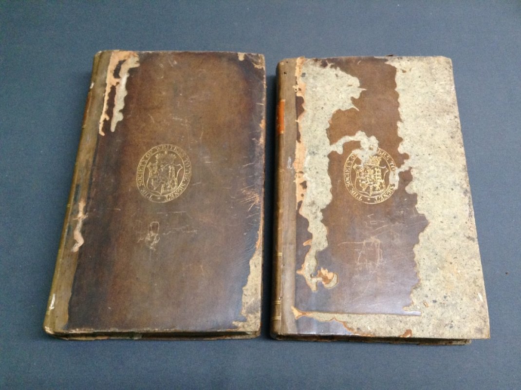 Four Volumes, Vol. I - III First Editions Pub.1797, - Vol IV Pub. 1814, From the"Second Edition", Not published with the first edition. 8vo., full calf gilt, with gilt emblem of The Society of Writers to front covers, all volumes rebacked; Vol I: [ii], 488pp inc. index, Vol II: 413pp inc. index, Vol III: 491pp in. index, Vol IV: [iv], 682pp, inc. index. Covers to all four volumes have heavy loss to leather (possibly eaten by insects or rodents) (see scan), Vols I-III have old ink inscriptions to title pages, and all four have old numerical bookplates to front pastedowns. Sound set overall. ** The first edition (three volumes) in English of 1797 was published before the author had finished the German original, and so the fourth volume, published for the first time in English with the second edition, is not normally found with sets of the first edition.**