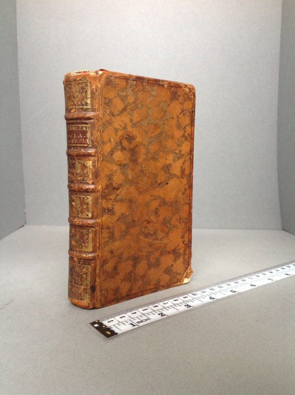 FIRST EDITION Small 8vo., (17cm x 10cm) bound in contemporary mottled calf, raised bands and decorative gilt to spine. Marbled endpapers. Text in French. xii, 445pp, [3]. Occasional faded ink markings in margins. Corner of one page missing but not affecting text. Binding somewhat worn and rubbed at edges and corners. Overall a Good Copy.