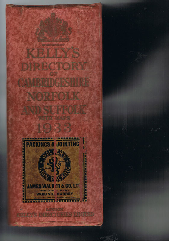 KELLY'S DIRECTORY OF THE COUNTIES OF CAMBRIDGE, NORFOLK and SUFFOLK 1933.