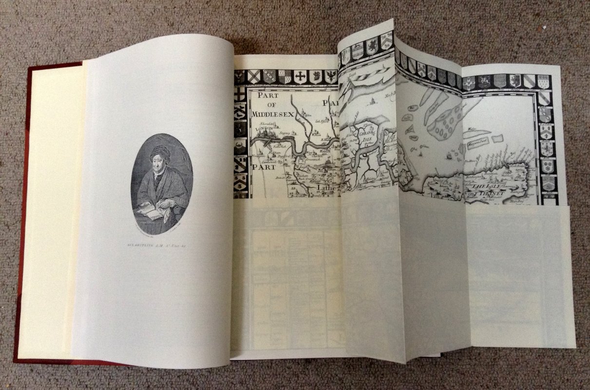 "This book is a facsimile reprint from an original [First Edition] in the possession of Kent County Library. It has been published as a Limited Edition of 30 copies." Folio. Half leather bound with terracotta coloured cloth and red leather, gilt title label to spine. iii, iv, ii, iv, 592, xl [Index, Additions and Emendations] plus 10 unnumbered pages of extra illustrations at end.. Illustrated with a portrait frontispiece, loose folding map by Samuel Parker of Kent, and 42 plates and charts, mostly folding, plus 10 additional pages of illustrations at end. A VERY GOOD FACSIMILE EDITION OF THIS SCARCE AND IMPORTANT WORK.
